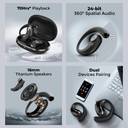 truke ResonanceX OWS w/ 70H Playtime, 24-bit Spatial Audio, 16mm Drivers, Dual Pairing Bluetooth (Ash Black, In the Ear)