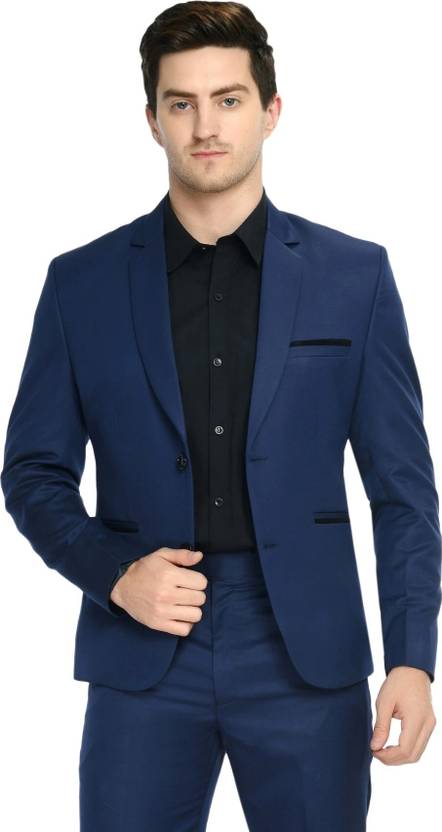 TRULYFEB Solid Single Breasted Formal Men Blazer (Dark Blue)