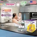 With well-defined attachments, such as tongs, bottle shelf, nipple shelf, base and cover, this device is easy to assemble and handy to carry while traveling.