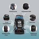 Adventure Series Water Resistance Trekking Hiking Travel Bag with Shoe Compartment Rucksack- 55 L (Black/Blue)