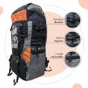 Adventure Series Water Resistance Trekking Hiking Travel Bag with Shoe Compartment Rucksack- 55 L (Black/Orange)