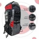 Adventure Series Water Resistance Trekking Hiking Travel Bag with Shoe Compartment Rucksack- 55 L (Black/Red)