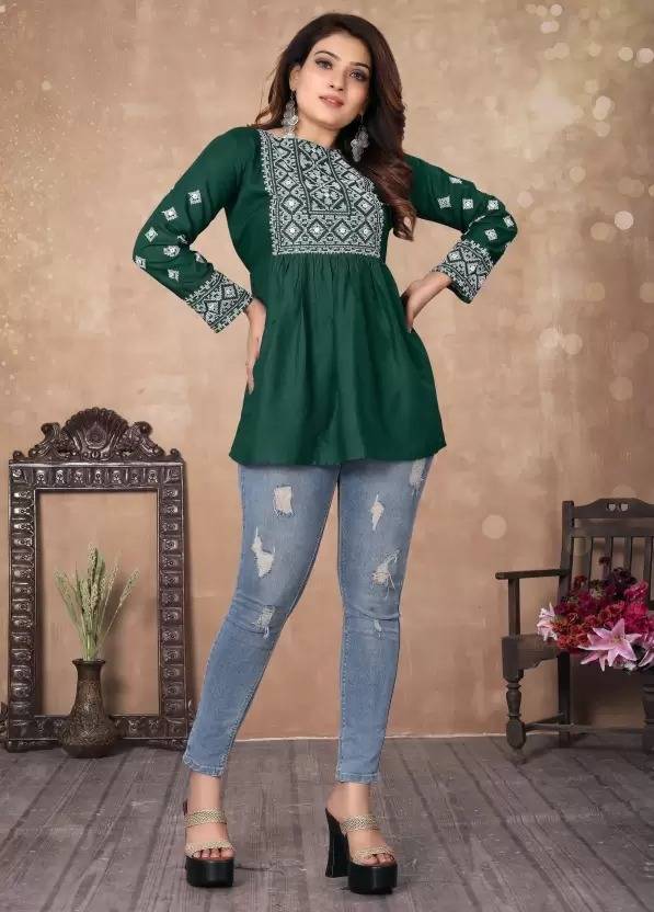 This is perfect for any occasion from a casual outing to regular office wear, Embroidered woven A-line top, has a Boat neck, three-quarter sleeves, Try wearing with a pair of your favorite classic jeans or leggings or Trousers, Fit Type: Regular Fit, Fabric : Rayon; Fit Type: Regular Fit, Pattern: Embroidered, Neck Style: Boat Neck, Sleeve Type: 3/4 Sleeve,Collar Style: Classic Collar,Care Instructions: Machine Wash