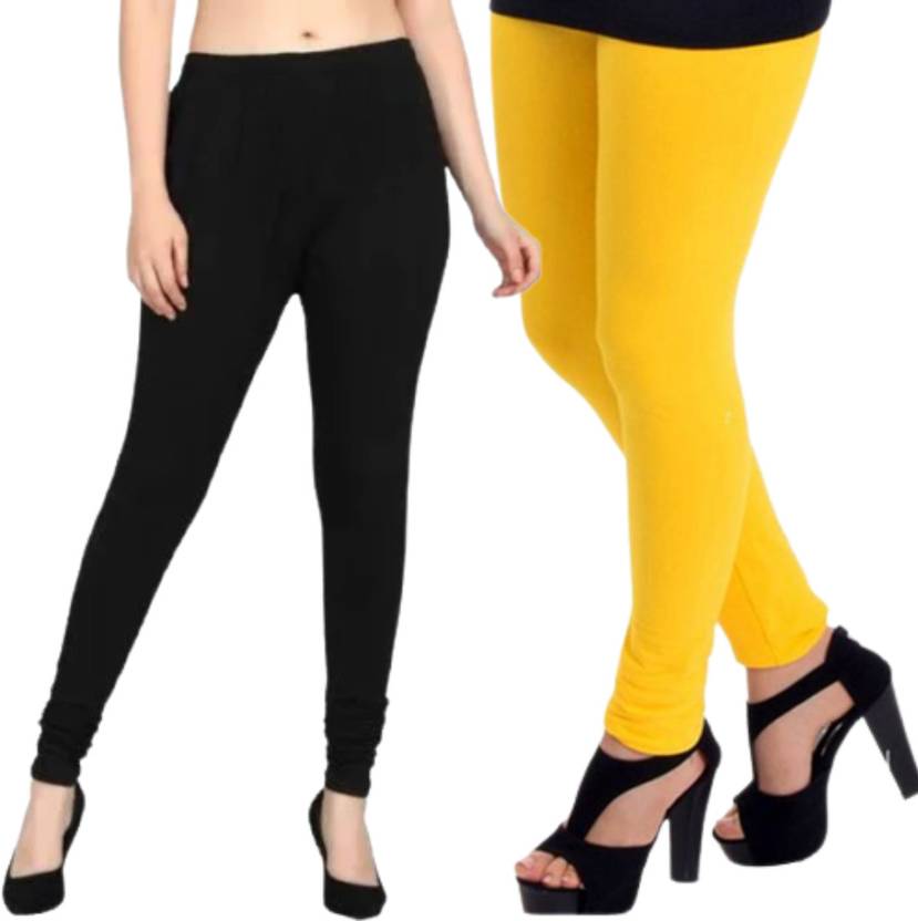 Fancy trend women's leggings} Size- Free size Waist size- S to Xl fit Hip size- 80 cms to 95 cms. 160-180 GSM Multipack-2 Material - soft cotton blend Lycra. *Churidars 2 way leggings*