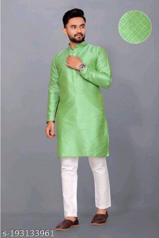 TRUST OUS Men Checkered Straight Kurta (Light Green)