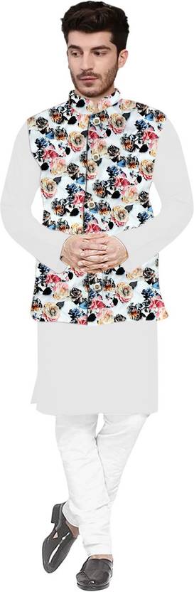 Men Cotton Blend Kurta Churidar Ethnic Jacket Set