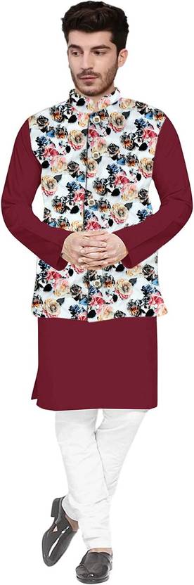 Men Cotton Blend Kurta Churidar Ethnic Jacket Set