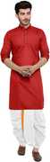 Celebrating Tradition: Celebrate the essence of Indian tradition with our Kurta Maharaj Dhoti Set, a symbol of cultural pride and sartorial grace. Each piece is crafted with care to offer a luxurious feel and a distinguished appearance.