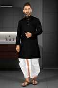 Traditional Dhoti: Pre-stitched or wrap-around style dhoti included, easy to wear and drape, providing a graceful and authentic silhouette.