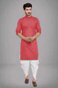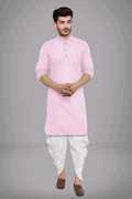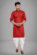 The kurta pyjama set is made from a cotton blend fabric, which combines the softness and breathability of cotton with the added durability and wrinkle-resistance of synthetic fibers. The kurta is typically knee-length or slightly below the knees, featuring a relaxed, straight cut that provides ease of movement. The kurta pyjama set incorporates ethnic design elements that reflect traditional craftsmanship.