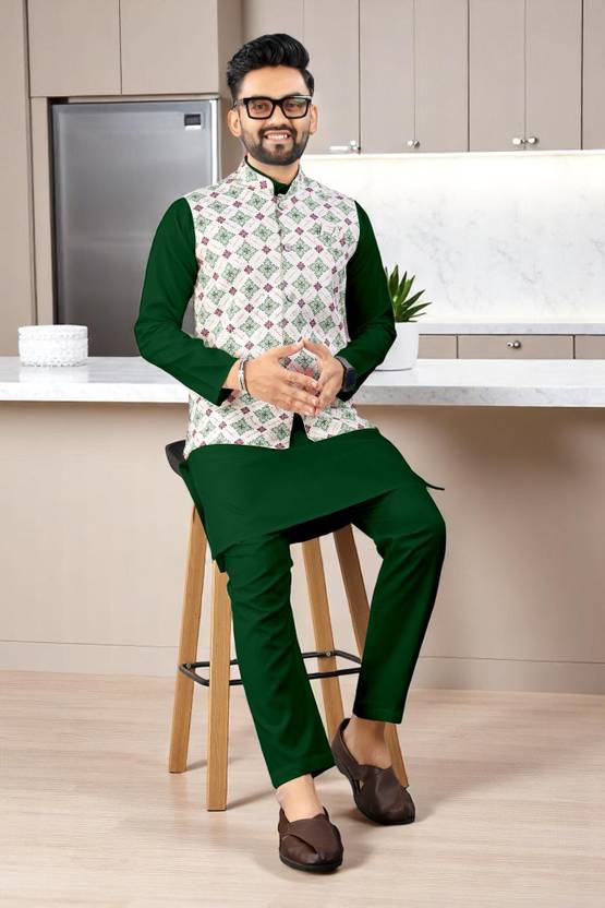 TRUST OUS Men Kurta Pyjama Ethnic Jacket Set