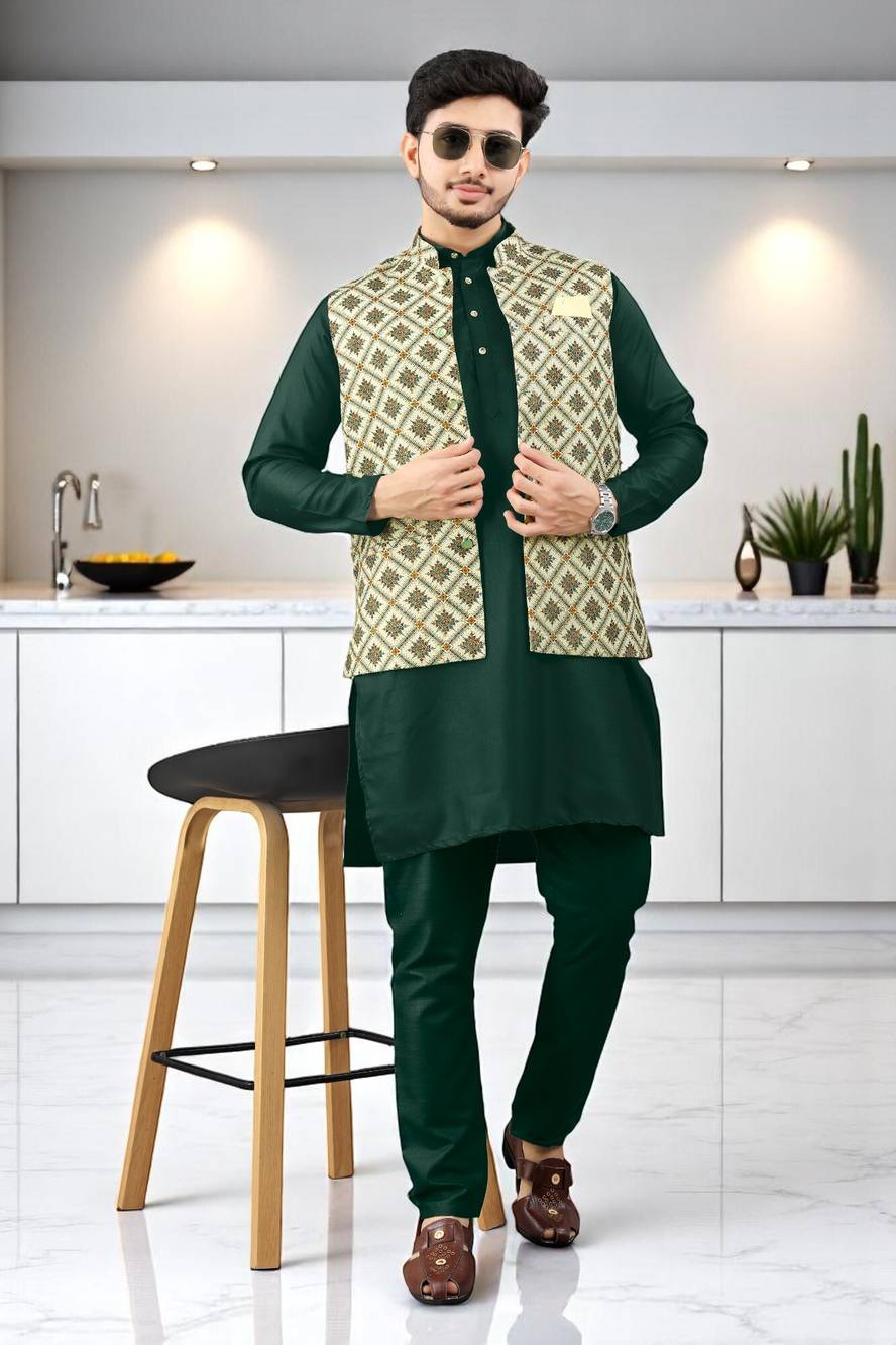 TRUST OUS Men Kurta Pyjama Ethnic Jacket Set