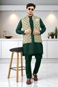 Men Cotton Blend Kurta Pyjama Ethnic Jacket Set
