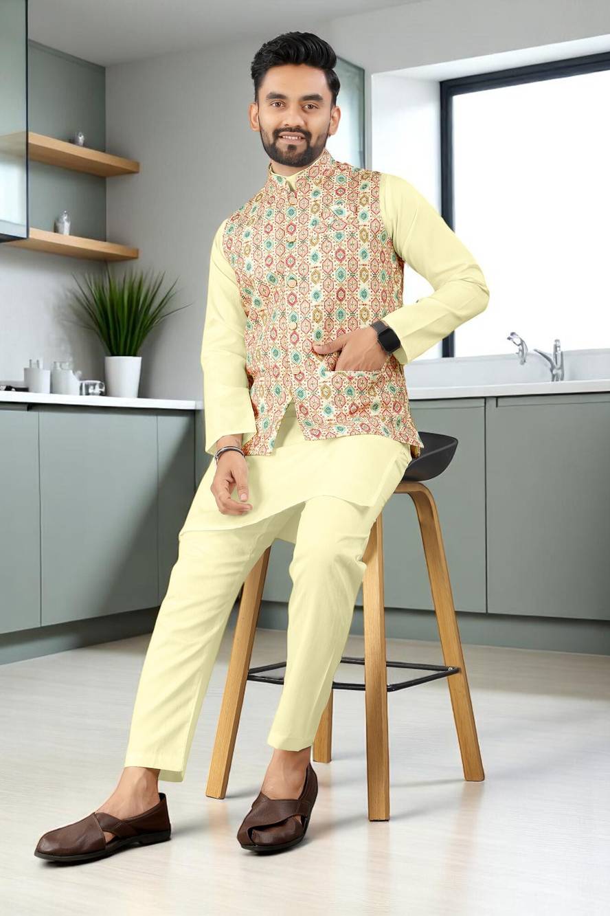 TRUST OUS Men Kurta Pyjama Ethnic Jacket Set
