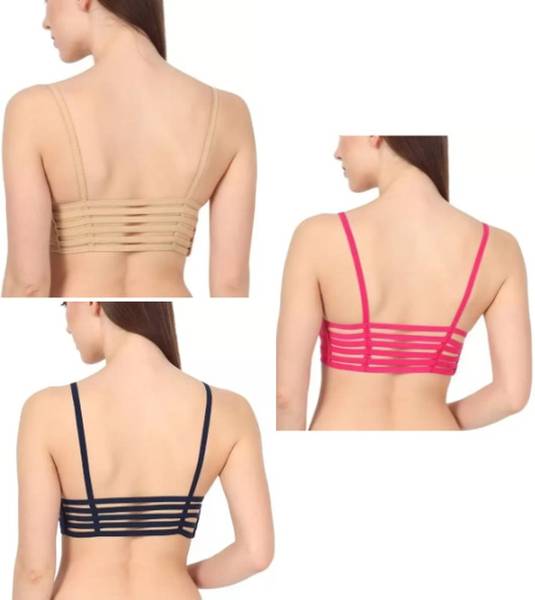Trustizen Stylish, Comfortable 6 strap bralette (PACK OF 3) Women Cage Bra Lightly Padded Bra (Beige, Pink, Blue)