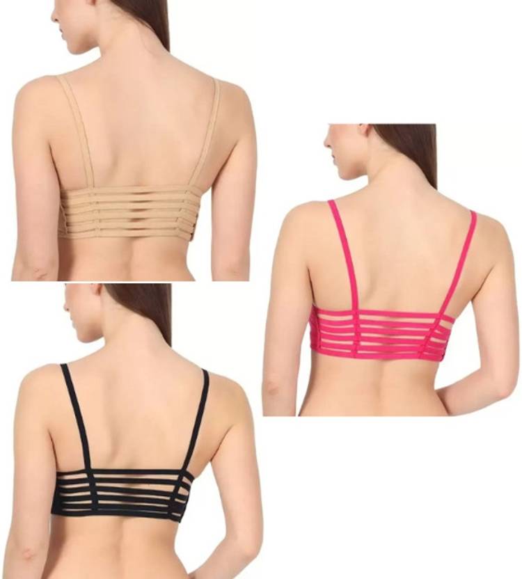 Trustizen Stylish, Comfortable 6 strap bralette (PACK OF 3) Women Cage Bra Lightly Padded Bra (Pink, Beige, Black)