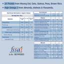 | Nutrient Content | - Energy - 316(KCal), Protein - 18.8 g, Carbohydrates - 61.2 g, Total Fat - 1.6 g, Calcium - 589.7 mg, Potassium - 233.3 mg, Iodine - 225 mcg, Zinc - 11 mg, Brahmi - 0.5 mg, Ashwagandha - 0.5 mg, Vitamin A - 1300 mcg Vitamin B1 - 1 g Vitamin B2 - 1.7 mg Vitamin B3 - 19.8 mg Vitamin B12 - 4 mcg Vitamin C -72.3 mg Vitamin D3 - 50 mcg Vitamin E - 20 g