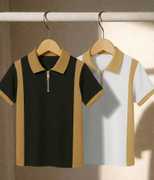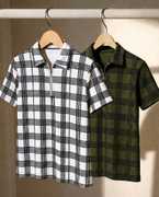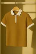 Try This Checkered Men Zip Neck Brown T-Shirt