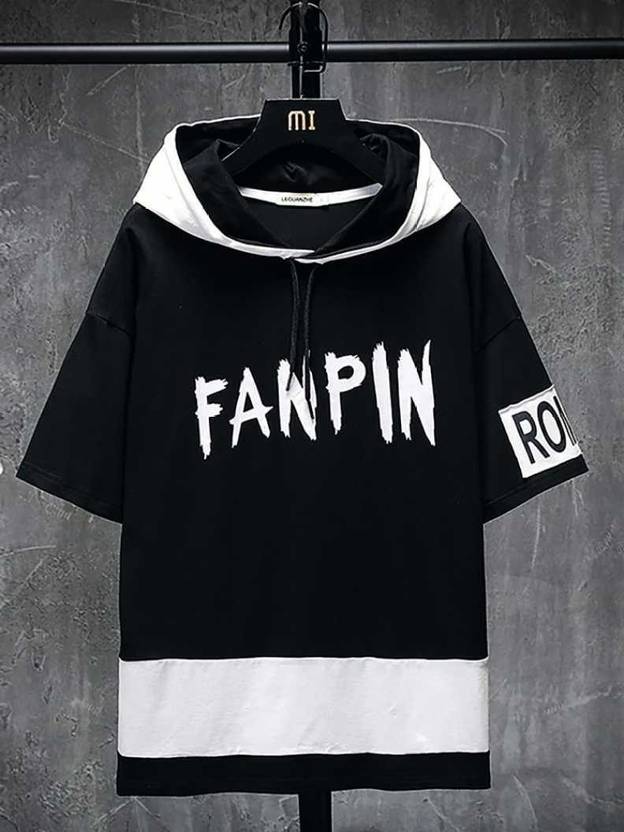 Try This Colorblock Men Hooded Neck Black T-Shirt