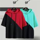 Pack of 2 Men Colorblock Hooded Neck Cotton Blend Red, Light Blue T-Shirt
