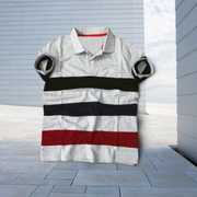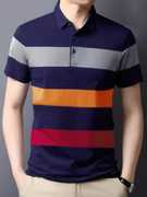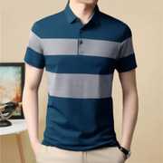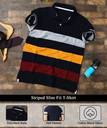Try This Striped Men Polo Neck Dark Blue T-Shirt