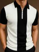 Try This Colorblock Men Zip Neck Black T-Shirt