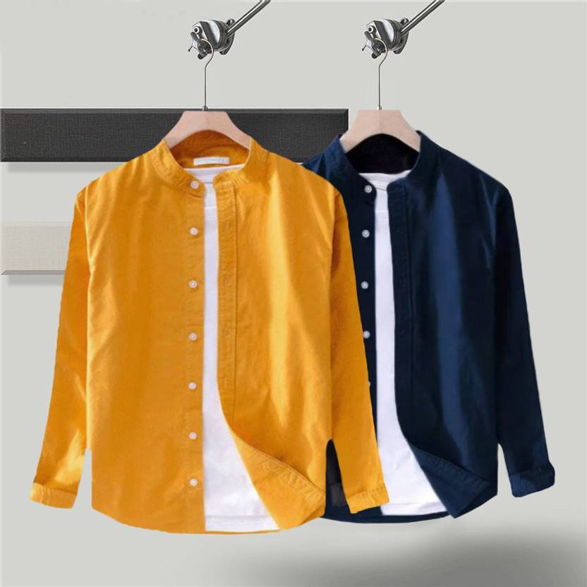 Try This Men Solid Casual Blue, Yellow Shirt (Pack of 2)