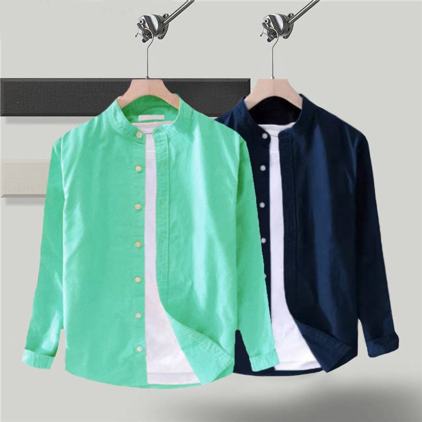 Try This Men Solid Casual Green, Blue Shirt (Pack of 2)