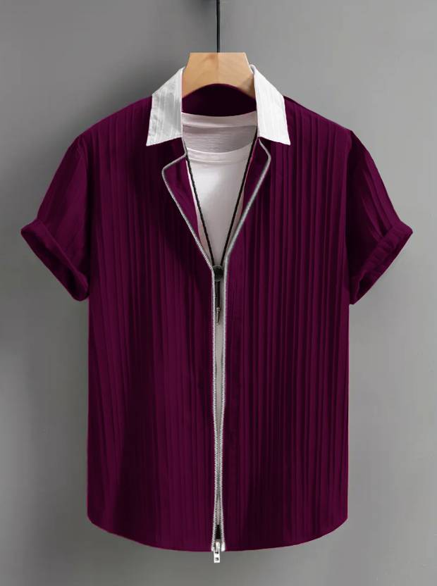 Try This Men Solid Casual Maroon Shirt
