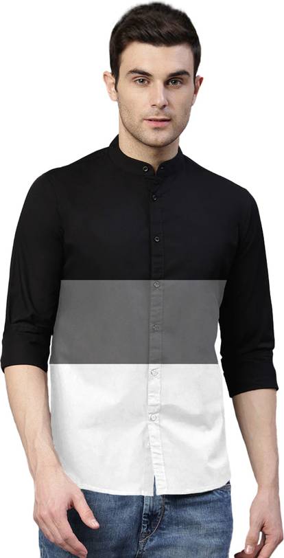 Men Slim Fit Solid Mandarin Collar Casual Shirt