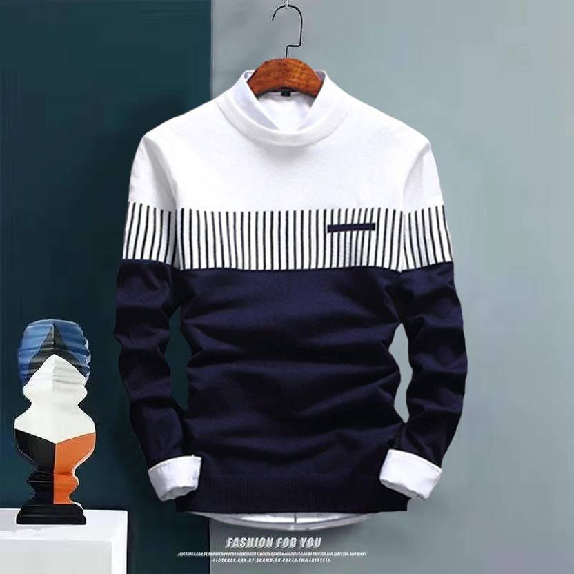 Try This Printed Men Round Neck Blue, White T-Shirt