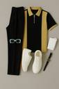 Try This Self Design Men Zip Neck Black, Brown T-Shirt