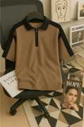 Try This Self Design Men Zip Neck Purple T-Shirt