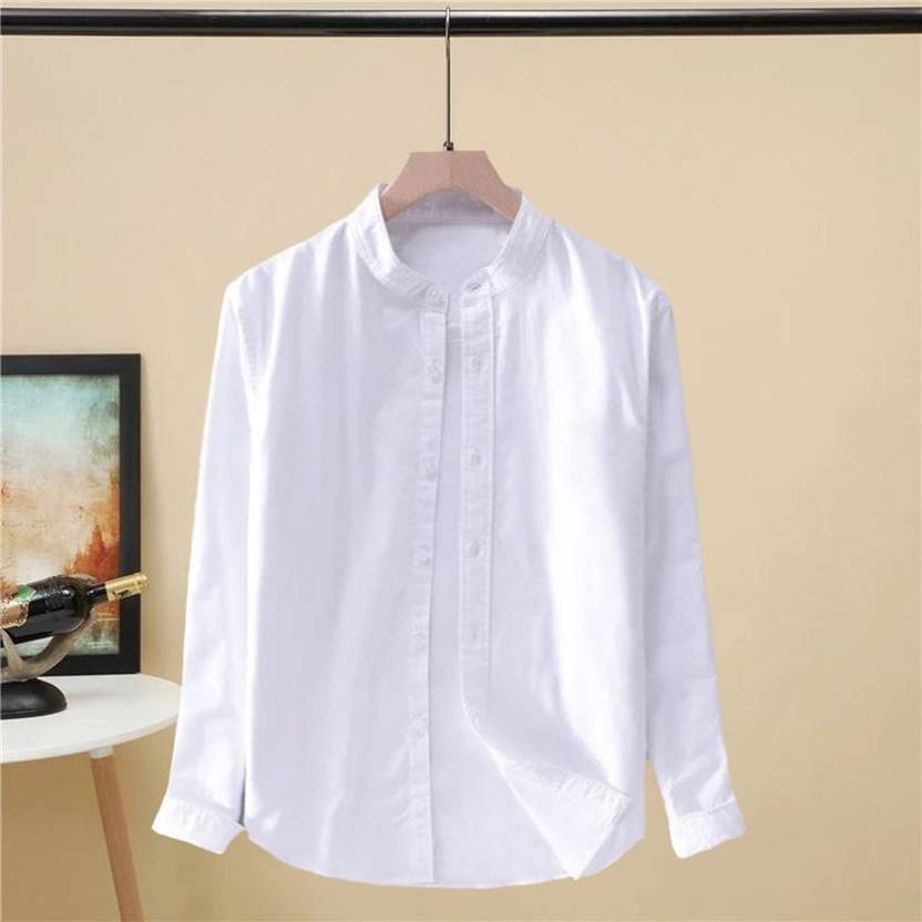 Try This Solid Men Mandarin Collar White T-Shirt