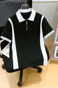 Try This Solid Men Zip Neck Black, White T-Shirt