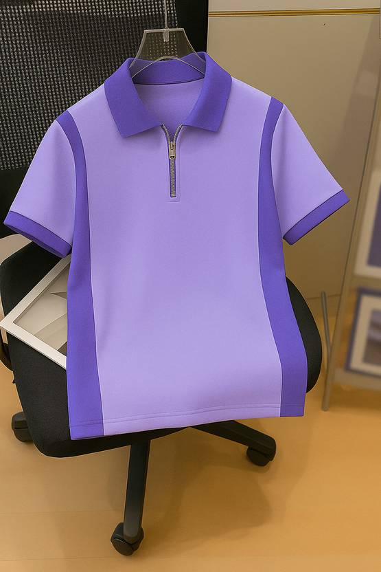 Stay on‑trend in this lavender regular cotton blend polo neck t shirt from Try This.