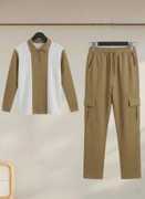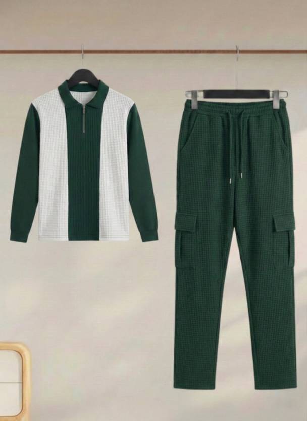 Stay on-trend in this green regular cotton blend striped track suit from Try This.