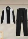 Stay on-trend in this black regular cotton blend striped track suit from Try This.