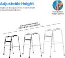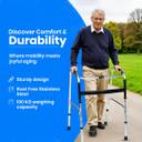 PREMIUM STAINLESS STEEL FRAME FOR DURABILITY – Made of high-quality stainless steel, ensuring rust resistance, long-lasting strength, and superior durability.ADJUSTABLE HEIGHT FOR CUSTOMIZED FIT – Easily adjusts between 74 cm to 84 cm, catering to different user needs for enhanced comfort and stability.FOLDABLE DESIGN WITH ONE-PUSH BUTTON MECHANISM – Effortlessly folds with a simple push, allowing for quick storage and hassle-free portability.DUAL-MODE FUNCTIONALITY: FIXED & ZIGZAG MOVEMENT – Seamlessly switch between fixed mode for stability and zigzag (reciprocal) mode for a more natural walking motion.DOUBLE-EDGE FRAME FOR MAXIMUM STRENGTH & SAFETY – The reinforced double-edge stainless steel structure enhances support, balance, and durability for long-term use.DOUBLE-EDGE FRAME FOR MAXIMUM STRENGTH & SAFETY – The reinforced double-edge stainless steel structure enhances support, balance, and durability for long-term use.COMFORTABLE FOAM HANDGRIPS FOR A SECURE HOLD – Equipped with soft foam handgrips, offering a firm, non-slip grip to reduce strain on the hands.ANTI-RUST & MAINTENANCE-FREE DESIGN – Constructed with rust-resistant stainless steel, offering long-lasting durability with minimal maintenance.