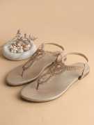 Step out in effortless elegance with these stylish flat sandals for women. Designed with a beautifully embellished upper, these sandals add a subtle touch of sparkle while maintaining a minimal and classy look. The toe-post design ensures a secure fit, while the soft footbed provides all-day comfort for regular wear.