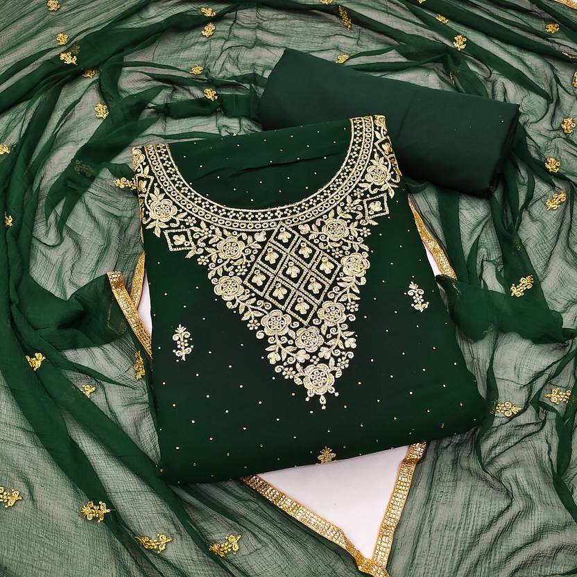 TRYSTON Georgette Embroidered Salwar Suit Material