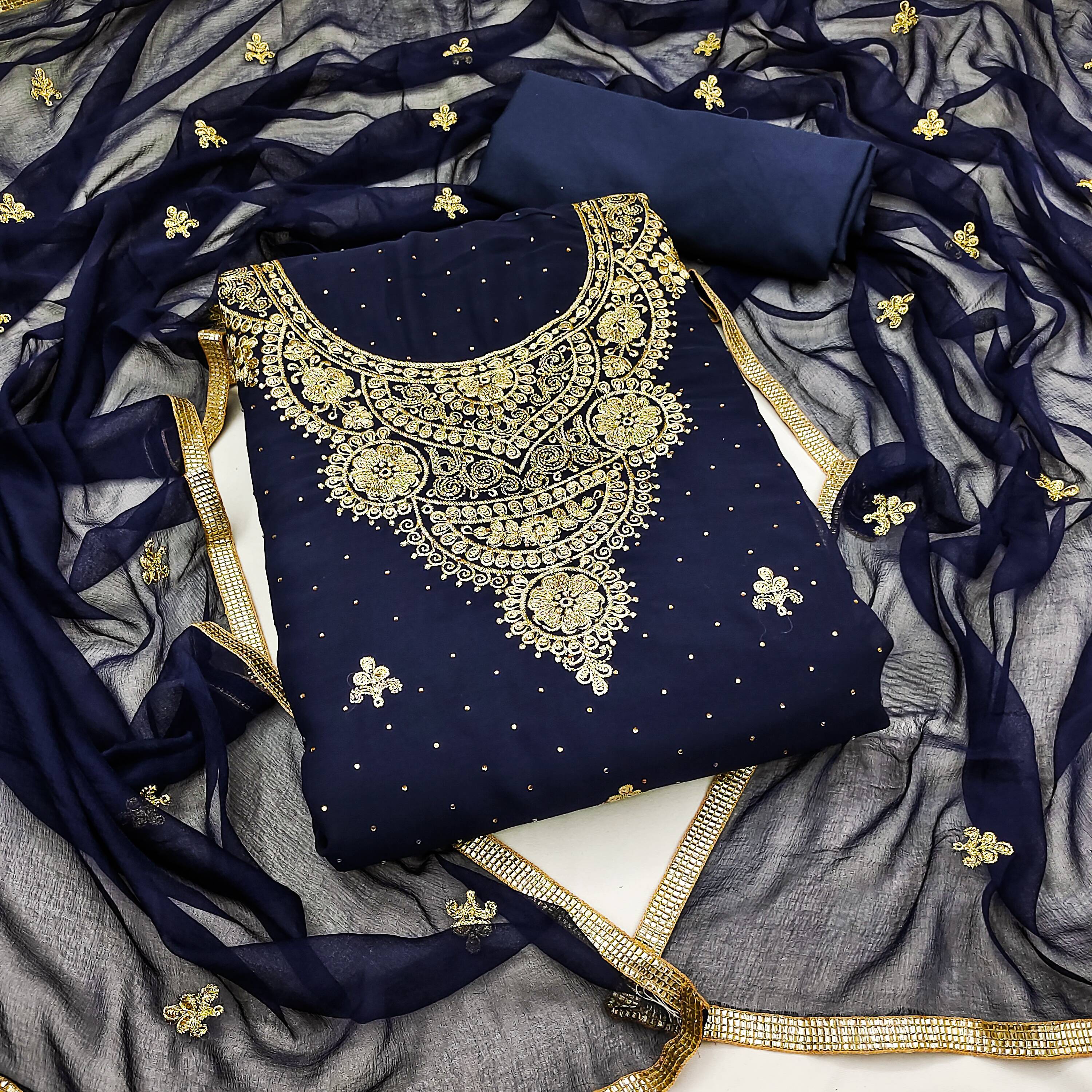 TRYSTON Georgette Embroidered Salwar Suit Material