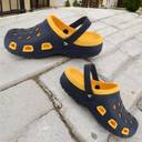 Clogs for men offer a blend of casual comfort and practicality, making them a versatile footwear choice for various occasions. Typically designed as slip-on shoes with a closed front and an open back strap that can be worn around the heel or pushed forward, they often feature a roomy fit and a supportive, cushioned footbed for all-day wear. Crafted from materials like EVA foam or rubber, men's clogs are lightweight, water-resistant, and easy to clean, making them ideal for both indoor and outdoor use, from relaxed days at home to quick errands or even some work environments. Available in a range of colors and styles, from classic solid hues to more contemporary designs with patterns or embellishments, they provide a comfortable and convenient option for men seeking effortless style and functionality.