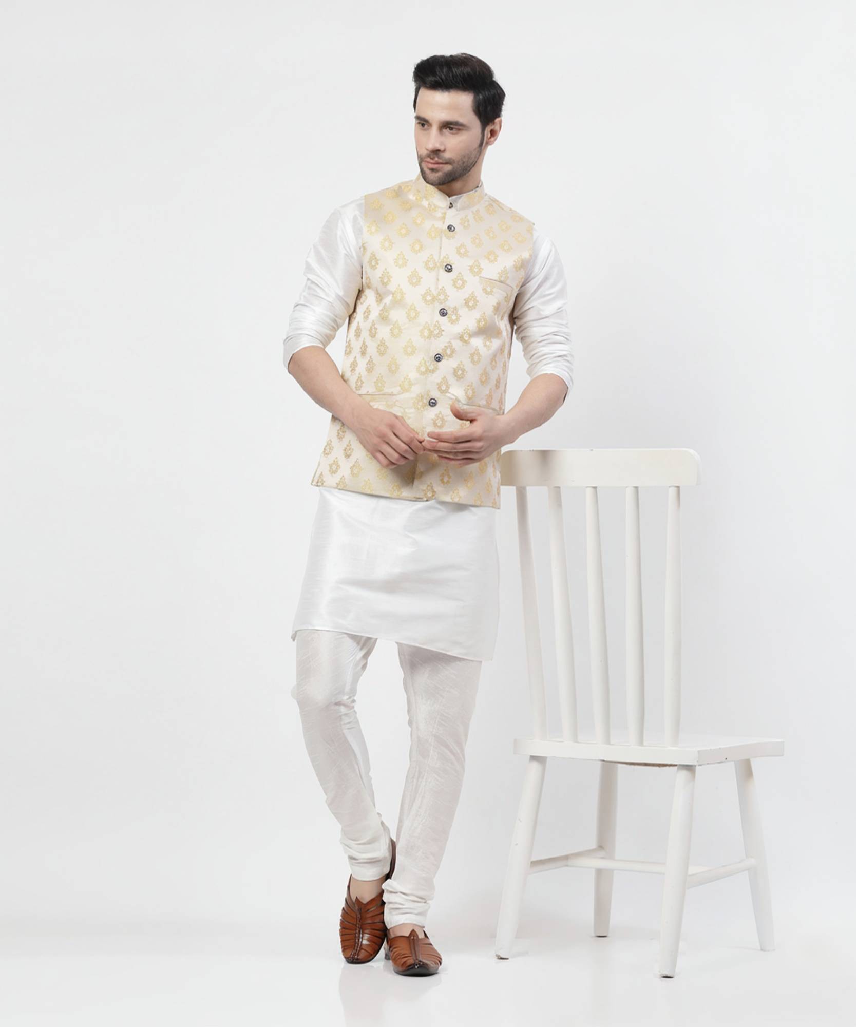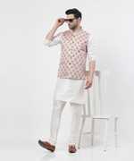 Men Dupion Silk Kurta Churidar Ethnic Jacket Set