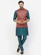 Men Dupion Silk Kurta Churidar Ethnic Jacket Set