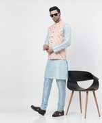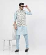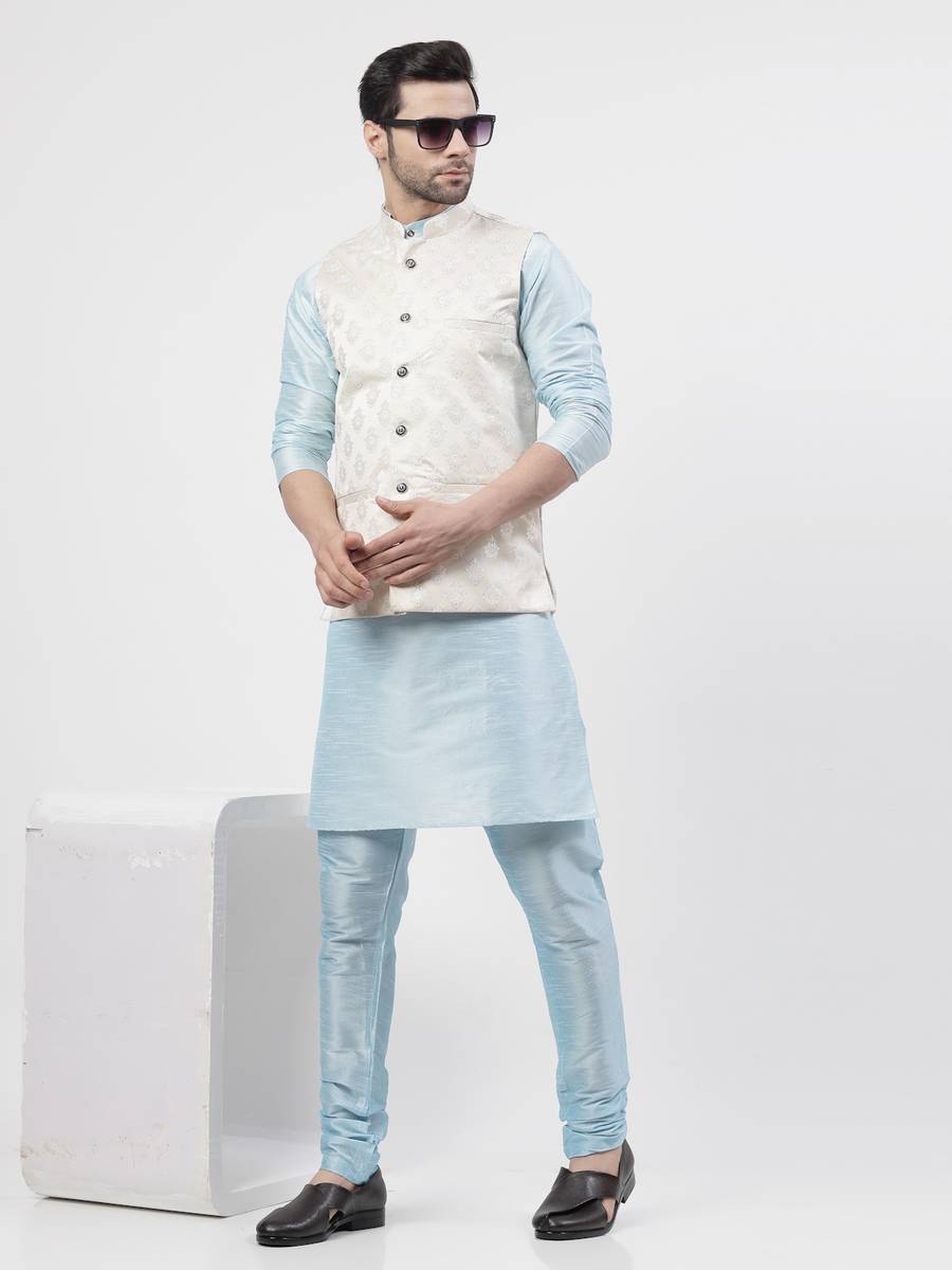 Men Dupion Silk Kurta Churidar Ethnic Jacket Set