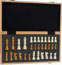 Chess is a two-player strategy board game played on a checkered board with 64 squares arranged in an 8×8 grid. Played by millions of people worldwide, chess is believed to be derived from the Indian game chaturanga sometime before the 7th century.This Wooden magnetic folding chess set is made up of finest quality wood having natural brown finish. It is exclusively handcrafted by some of the finest workers which makes it extremely durable. Each chessmen conceal magnet while the chess board has an iron sheet inside so that you can make a genuine move. The chessmen are sized logically to match the size of the chess board and each piece has its own designated storage place within the board. This chess set is very easy to carry along as this can store your chessmen when folded with two locks. Magnetic and folding, this board-game is a must-have when you plan long journeys. Chess is believed to be derived from the Indian game chaturanga some time before the century. Chaturanga is also the likely ancestor of the Eastern strategy games xiangqi, janggi, and shogi. Chess reached Europe by the 9th century, due to the Umayyad conquest of Hispania.