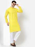 Look your ethnic best wearing this checkerd coloured kurta pyjama set for men from the . Made from Cotton, this regular-fit kurta pyjama set comprises a full-sleeved kurta and pyjama to complete your look. Team this outfit with embroidered mojris and rock the party that you attend . The best thing about this set is that you can pair any jacket, dupatta or accessory with this set. The best thing about this set is that you can pair any jacket, dupatta or accessory with this set.