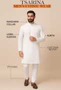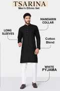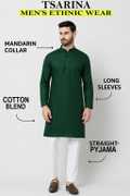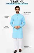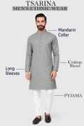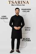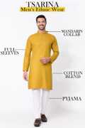 Enhance Your Ethnic Wardrobe With This Premium Quality Men's Ethnic Set From TSARINA, Designed For Men Who Appreciate A Blend Of Style, Comfort, And Tradition. This Elegant Set Includes A Stylish Kurta And A Comfortable Pyjama, Expertly Tailored From A Soft And Breathable Cotton Blend Fabric That Offers All-Day Ease And A Sophisticated Look. Perfect For Men Who Want To Make A Lasting Impression, The Kurta Features A Classic Mandarin Collar, Full Sleeves, And A Straight Hem That Adds A Refined Touch To Your Traditional Appearance. The Pyjama Complements The Kurta Beautifully, Ensuring You Look Graceful And Well-Dressed Wherever You Go. Whether You're Attending A Wedding, Festival, Religious Ceremony, Family Gathering, Or Cultural Event, This Ethnic Set Is The Ideal Choice. It's Also Suitable For Daily Traditional Wear, College Functions, Ethnic Days, And Special Celebrations. You Can Pair It With Mojaris, Sandals, Or Traditional Footwear To Complete The Look. This Outfit Is A Must-Have For Every Man Looking To Combine Contemporary Fit With Traditional Charm. The Lightweight Fabric Makes It An Excellent Option For All Seasons, Offering Both Comfort And Elegance In Every Wear. A Perfect Gift For Yourself Or Your Loved Ones, This Set Reflects True Indian Craftsmanship And Style. Fabric Care Machine Wash Gently With Mild Detergent, Dry In Shade, Iron On Low To Medium Heat. Avoid Harsh Bleach. Keywords Men’s Kurta Set, Ethnic Wear For Men, Festive Wear, Traditional Wear, Cotton Blend Kurta Pyjama, TSARINA Ethnic Set, Kurta Pyjama For Wedding, Kurta For Functions, Men’s Indian Wear, Party Wear Kurta Set.