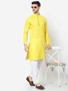 Look your ethnic best wearing this checkerd coloured Pathani set for men from the fashion house of TSARINA. Made from Cotton, this regular-fit kurta pyjama set comprises a full-sleeved kurta and pyjama to complete your look. Team this outfit with embroidered mojris and rock the party that you attend . The best thing about this set is that you can pair any jacket, dupatta or accessory with this set. The best thing about this set is that you can pair any jacket, dupatta or accessory with this set.
